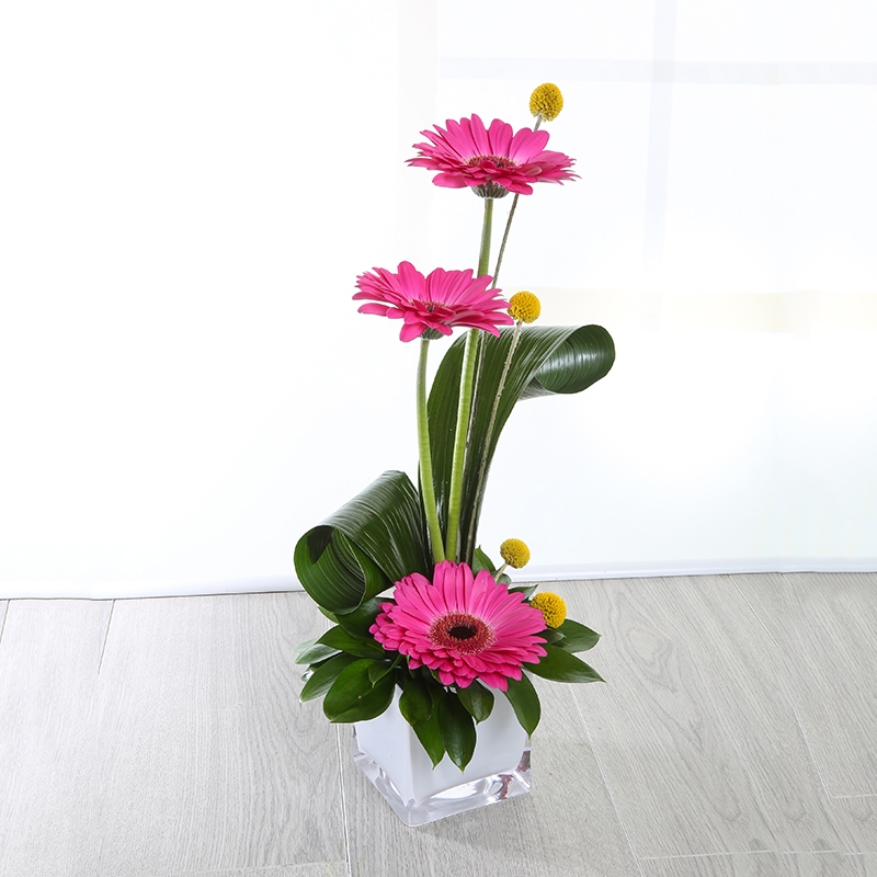 A modern cube arrangement suitable for any occasion, Ceres includes Gerbera and Craspedia.