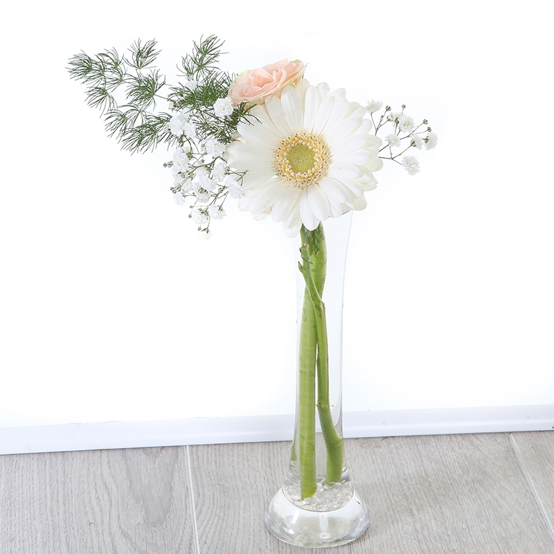 Freya is our simply stunning vase arrangement, using soft tones of Roses, Germini and Gypsophila.