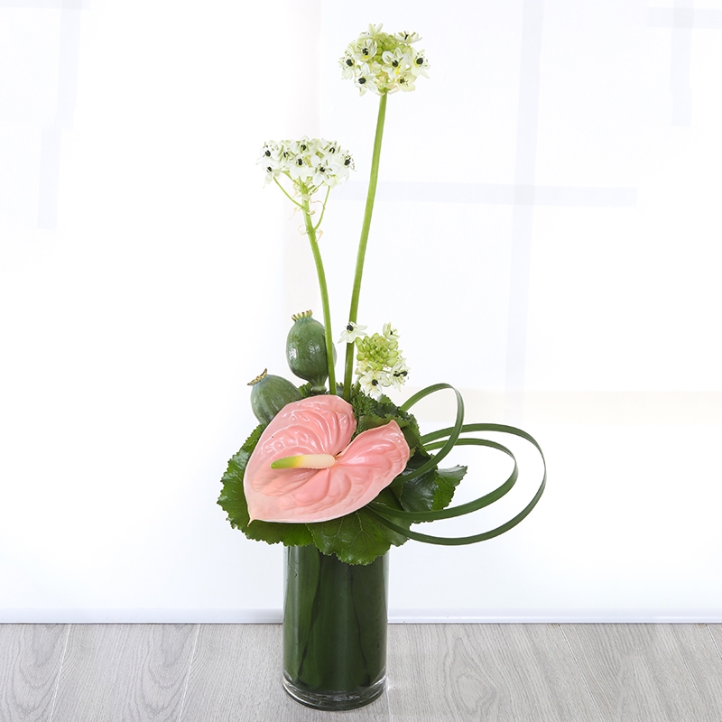A beautiful and elegant arrangement, Xanthe includes Ornithogalum, Anthurium, Poppy heads and Lily Grass.